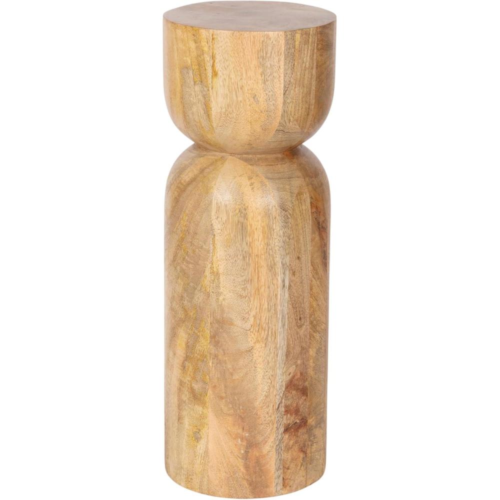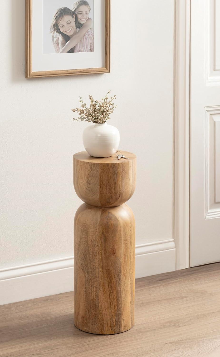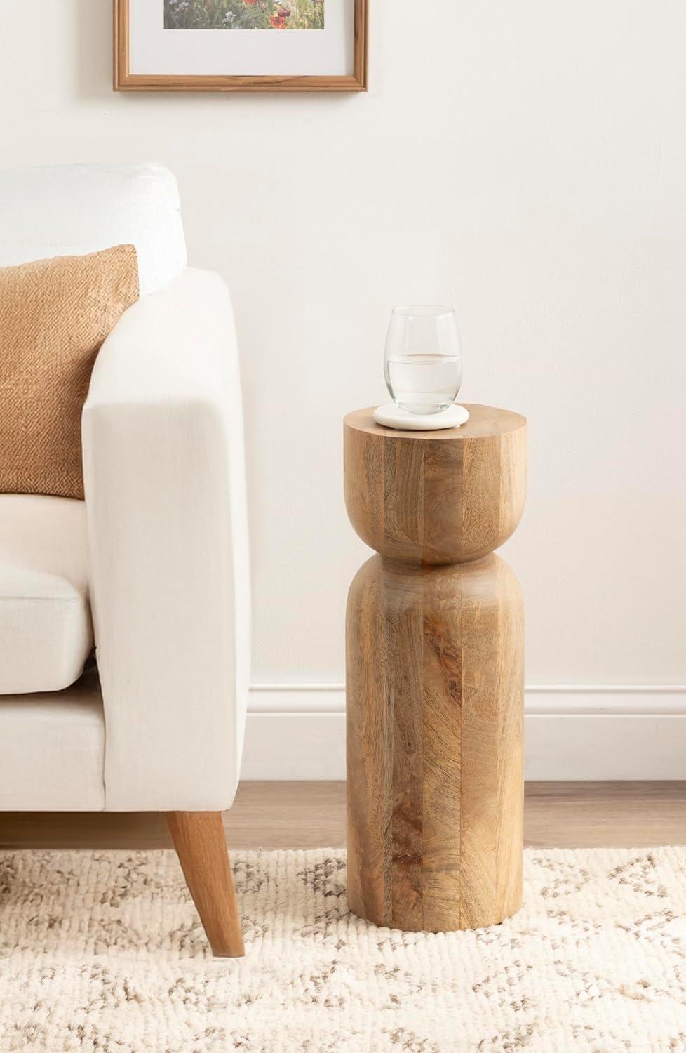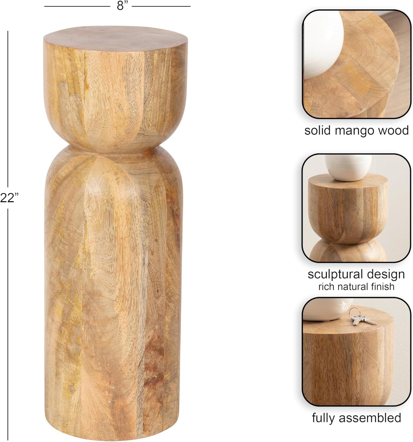 Kate and Laurel Teo Transitional Round Mango Wood Drink Table, 8 x 8 x 22, Walnut Brown and Black, Modern Sculptural Bedroom Nightstand with Unique Pedestal Table Design for Use as Indoor Plant Stand(Natural)