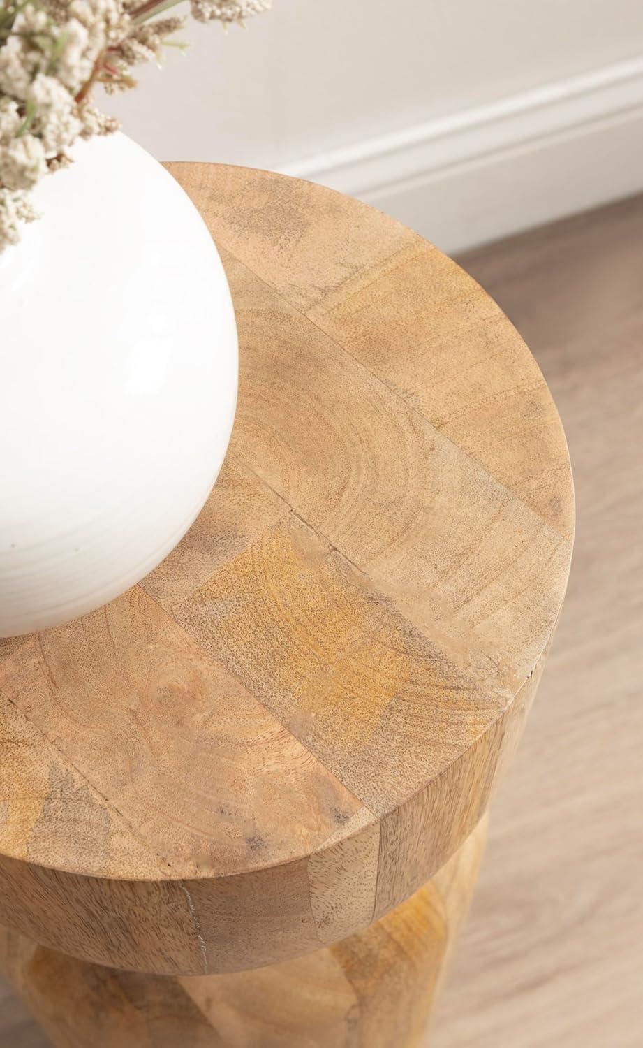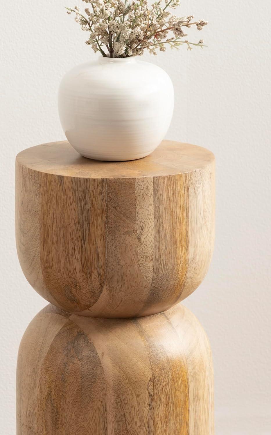 imageKate and Laurel Teo Transitional Round Mango Wood Drink Table 8 x 8 x 22 Walnut Brown and Black Modern Sculptural Bedroom Nightstand with Unique Pedestal Table Design for Use as Indoor Plant StandNatural