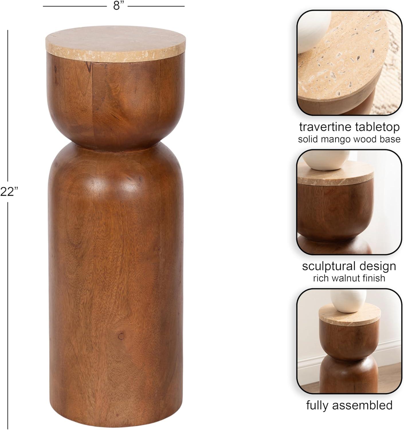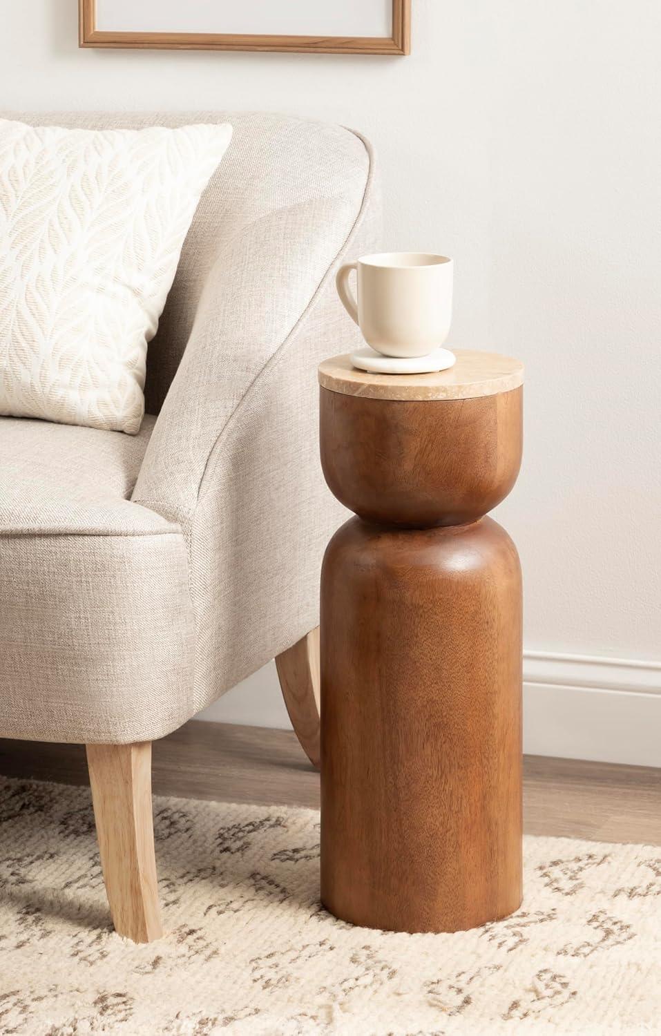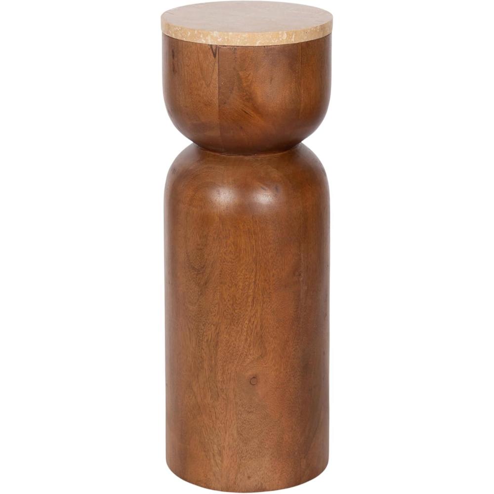imageKate and Laurel Teo Transitional Round Mango Wood Drink Table 8 x 8 x 22 Walnut Brown and Black Modern Sculptural Bedroom Nightstand with Unique Pedestal Table Design for Use as Indoor Plant StandNatural