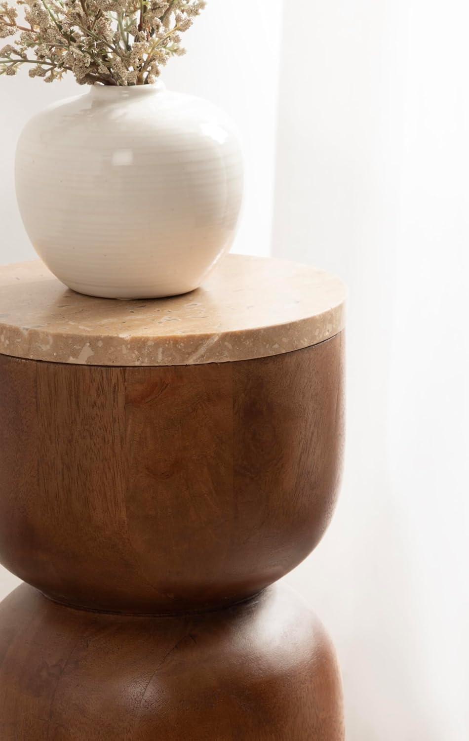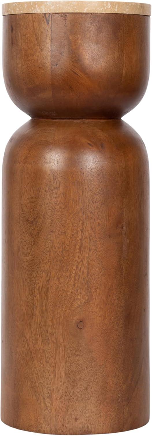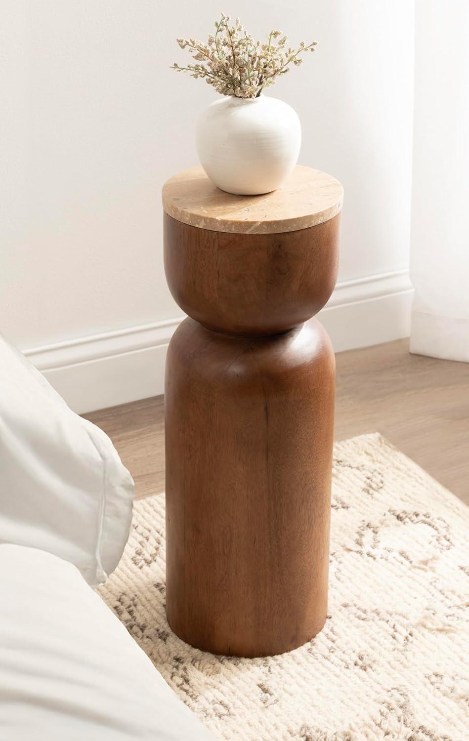 imageKate and Laurel Teo Transitional Round Mango Wood Drink Table 8 x 8 x 22 Walnut Brown and Black Modern Sculptural Bedroom Nightstand with Unique Pedestal Table Design for Use as Indoor Plant StandNatural