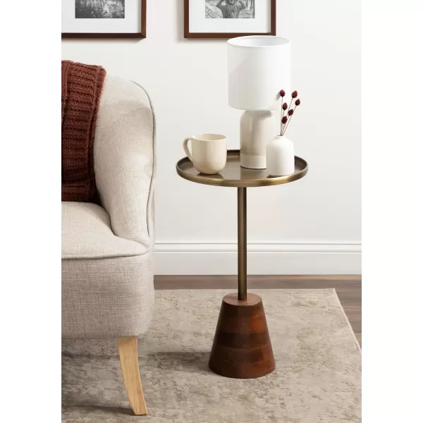 Kate and Laurel Tira Elegant Round Side Table, 14 x 24, Brass and Black, Modern Glam Circle End Table for Use as Bedroom Nightstand or Living Room Table Option(Walnut Brown/Gold)