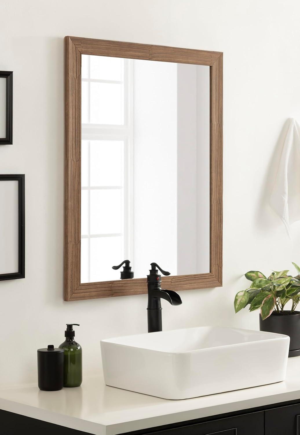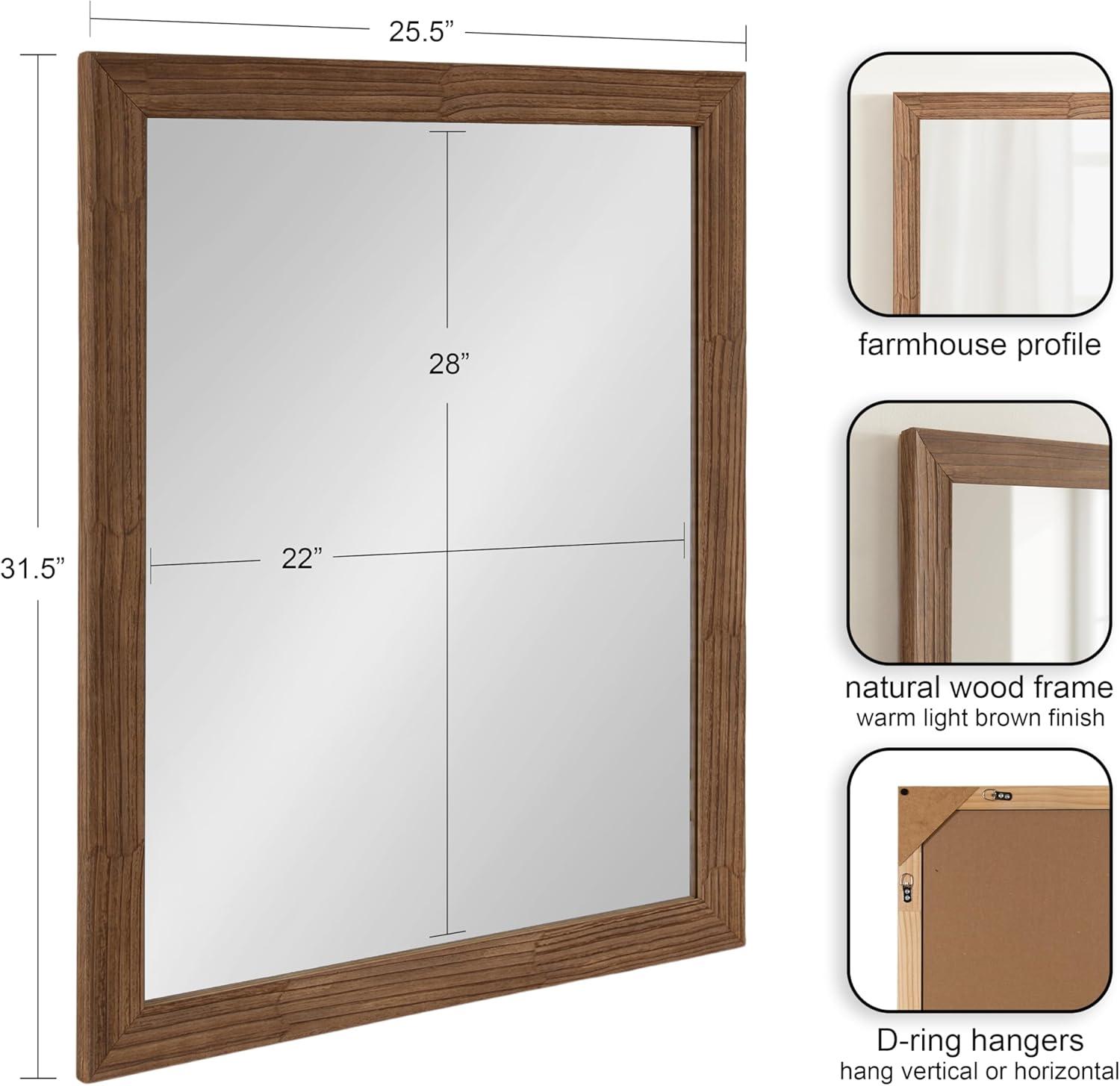 Farmhouse Bathroom Mirror Design: The Travon vanity mirror for bathroom features a natural wood frame with a slight scoop and a rustic brown finish