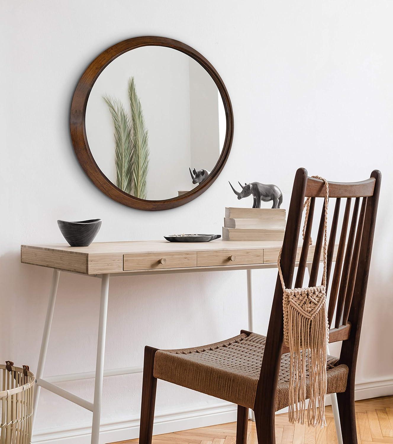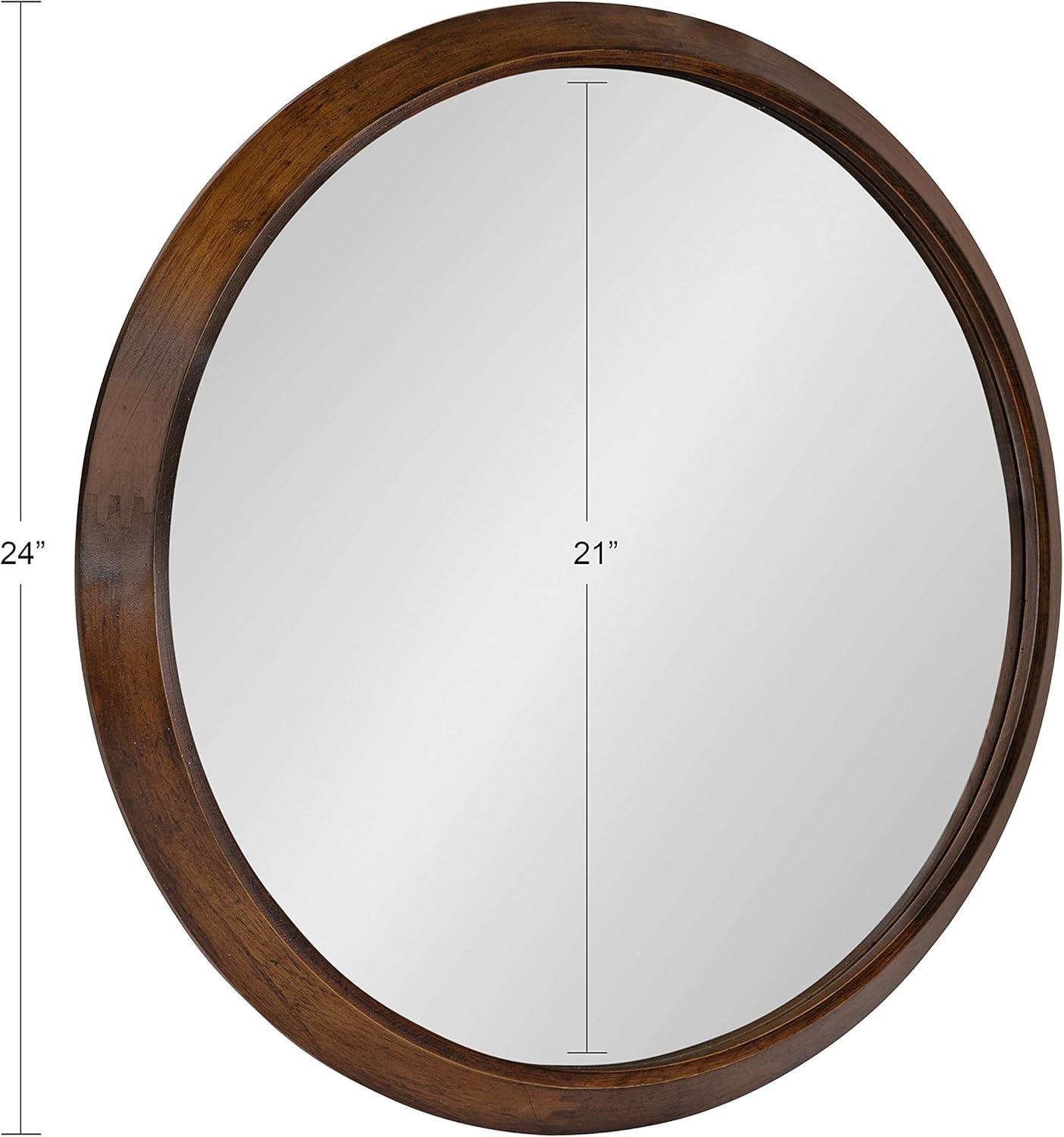 Kate and Laurel Uldrich Modern Round Wall Mirror, 24 inch Diameter, White, Decorative Round Mirror for Wall(Walnut Brown)