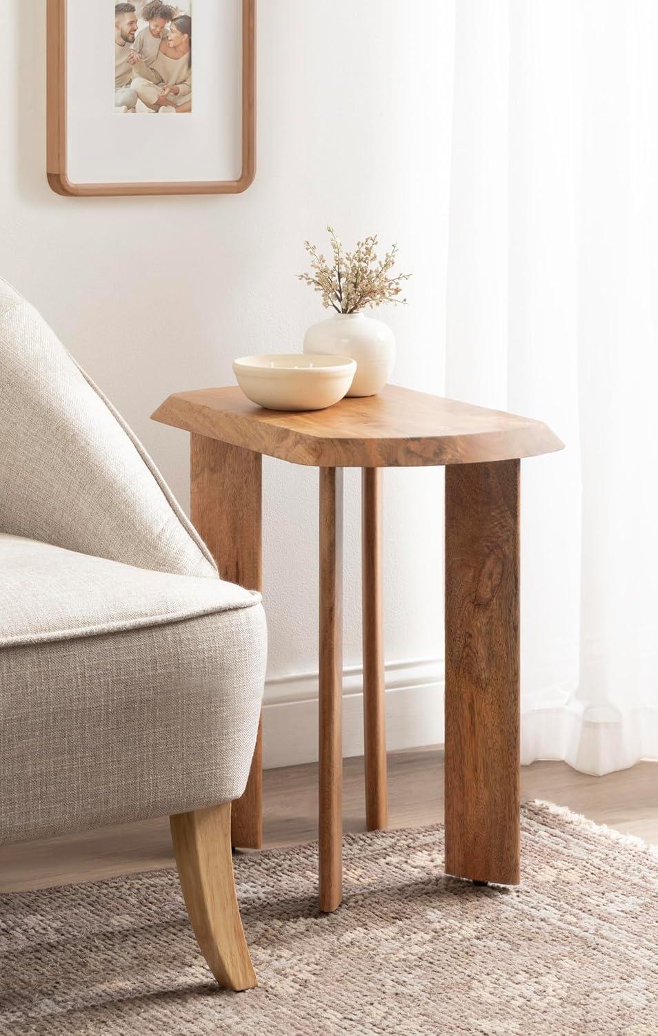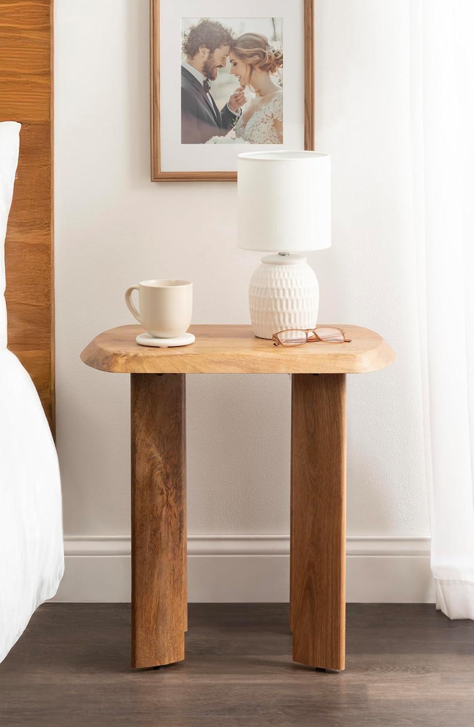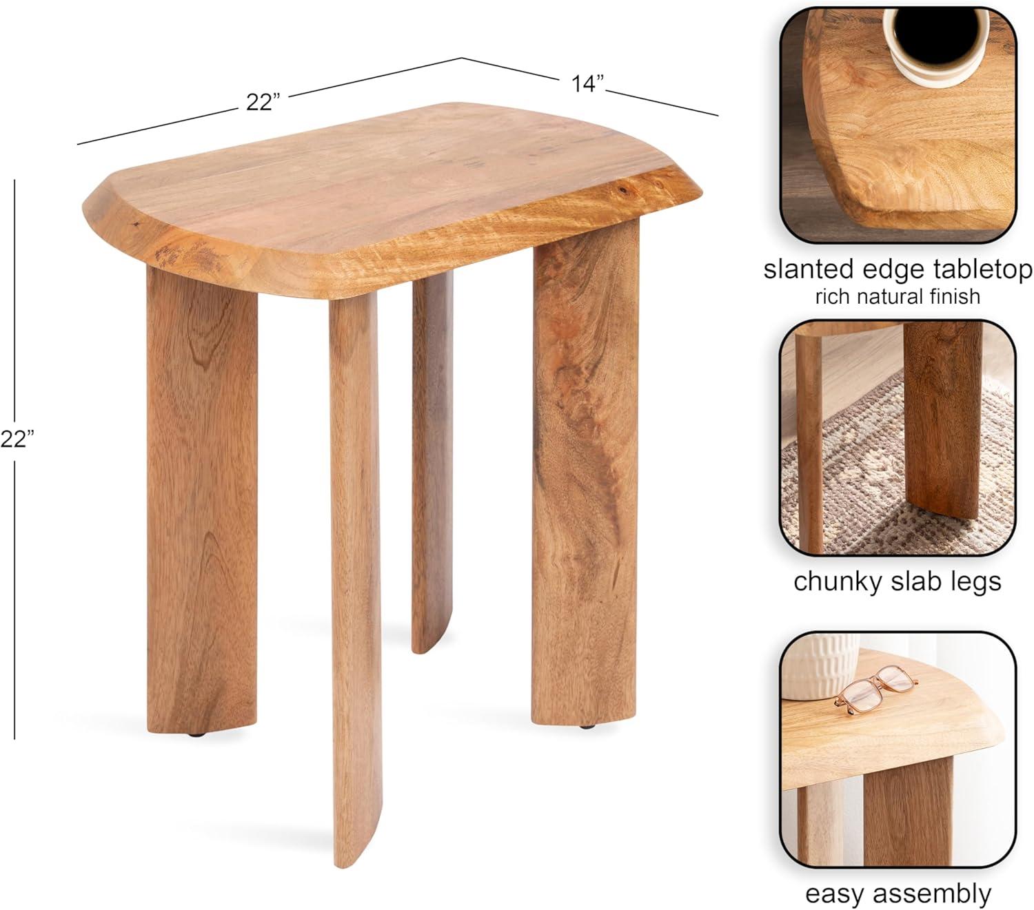 Kate and Laurel Vaux Modern Mango Wood Rectangular Side Table, 22 x 14 x 22, Natural Wood, Transitional Rectangle End Table with Angled Tabletop Edge for Bedroom Nightstand or Indoor Plant Stand
