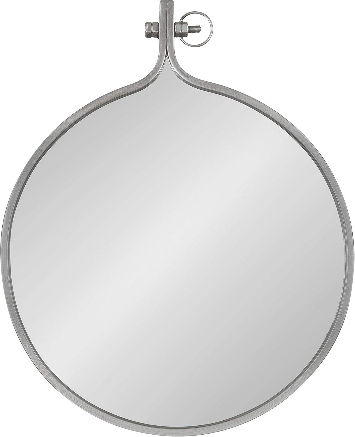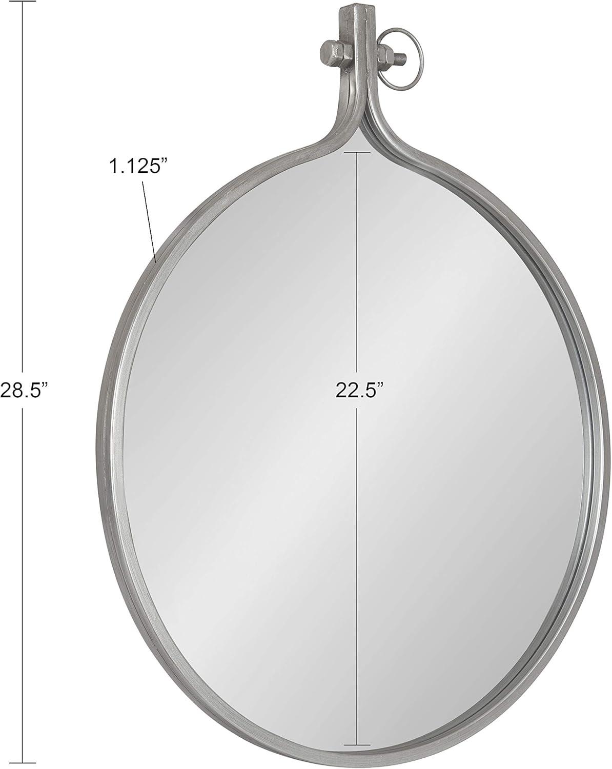 Kate and Laurel Yitro Round Metal Wall Mirror, 23.5 x 28.5, Silver, Farmhouse Wall Decor for Any Room